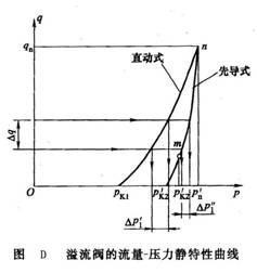 圖D為溢流閥的流量一壓力靜特性曲線,即入口壓力和流量的關(guān)系曲線。