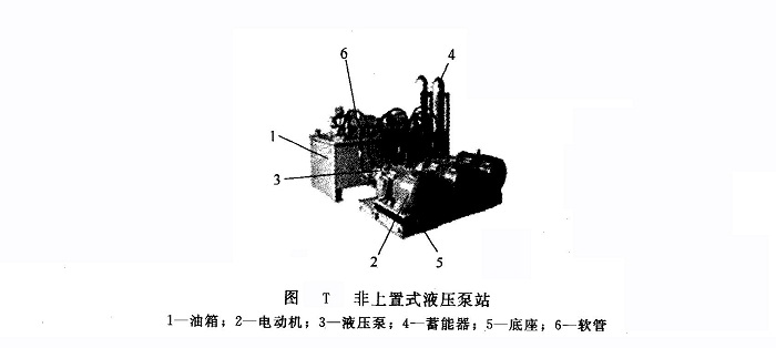 ④如安裝空間允許,則應(yīng)考慮采用非上置式液壓泵站,并將泵組與油箱分開放置(圖T),以隔離泵組振動對油箱的影響。
