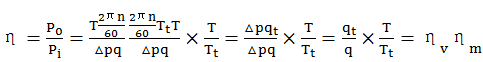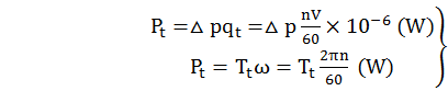 理論輸入功率與理論輸出功率相等,故可用同一符號Pt表示,其表達(dá)式為