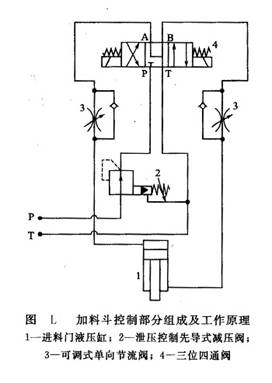 ②上頂栓控制部分的組成及工作原理上頂栓控制部分的組成及工作原理圖如圖J所示。在該部分中,最重要的元件是閉環(huán)比例閥。GK400型密煉機(jī)的壓力之所以能夠?qū)崿F(xiàn)無級可調(diào),就是因?yàn)樵谒南到y(tǒng)中使用了閉環(huán)比例閥。從閥的技術(shù)角度來看,閉環(huán)比例閥是由普通比例閥發(fā)展而來的,但是經(jīng)過不斷的開發(fā)和研究,現(xiàn)在閉環(huán)比例閥的性能已經(jīng)遠(yuǎn)遠(yuǎn)超過了普通比例閥,在某些方面甚至能與伺服閥相媲美。與普通比例閥相比,閉環(huán)比例閥最重要的一個(gè)特征就是在閥中位時(shí)能實(shí)現(xiàn)零遮蓋。正是這一特征,使它能夠作為控制元件用于閉環(huán)調(diào)節(jié)回路當(dāng)中。在GK400型密煉機(jī)的上頂栓壓力控制系統(tǒng)中采用的是先導(dǎo)式閉環(huán)比例閥,該閥的主閥和先導(dǎo)閥都有位移傳感器,位移傳感器以及壓力傳感器輸出的信號與控制板的設(shè)定值進(jìn)行比較。根據(jù)比較計(jì)算的結(jié)果,控制板向閉環(huán)比例閥發(fā)出信號,這一信號被反饋到先導(dǎo)閥的比例電磁鐵巾,因而比例電磁鐵通過控制先導(dǎo)閥的開口及方向,就可實(shí)現(xiàn)對上頂栓壓力和速度的無級調(diào)整。